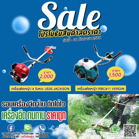 - งานกำจัดวัชพืช/บำรุง: เครื่องตัดหญ้า 4 จังหวะ JACKSON, เครื่องตัดหญ้า VERGIN (แบบรถเข็น), เครื่องตัดหญ้าแบตเตอรี่, เครื่องพ่นยา/พ่นปุ๋ย KOSHER, Black Tiger, MACNUM